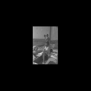35 mm black-and-white negative; photographed by Carleton Mitchell; deck view of yawl yacht FINISTERRE; ca. 1957; possibly during a race; handwritten on original envelope "R 27671 C36" (corresponds to original Mitchell contact sheet); printed on negative frame number "11".