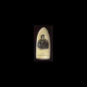 Scrimshaw whale tooth, "Battle of Lake Champlain - M'Donough's Victory"