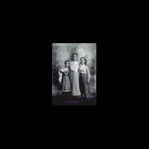 Gelatin glass negative by E.A. Scholfield; negative number scratched on plate; portrait of three girls.