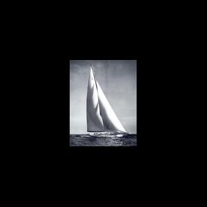 7x5 safety negative photographed by Rosenfeld and Sons in 1937. Image of 135' Bath Iron Works J class sloop RANGER (built 1937 in Bath, Me.) off the Rhode Island coast of on Lond Island Sound. Visible in image: starboard beam view of RANGER (J/5) on port close reach under marconi-rigged mainsail, staysail and jib, bow spray, shadows of headsails on mainsail. Handwritten on original negative sleeve: "82725F / Ranger, 1937 / DDN / SEE 8x10 COPY NEG. 66976". CREDIT LINE: Mystic Seaport, Rosenfeld Collection, image acquired in honor of Franz Schneider. For more information see: A CENTURY UNDER SAIL, text by Stanley Rosenfeld, p. 108.