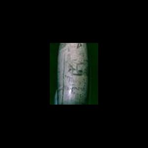 Large scrimshaw tooth; made by actor Raymond McKee, dated 5/13/22; depicts whaling scenes including the CHARLES W. MORGAN and Caribbean Island scenes during the filming of "Down to the Sea in Ships"; inscribed "West Indies/ Apr. 7, '22" and "To/ Margot/ from Raymond/ McKee/ je t'aime"; Margot is probably his co-star and future wife, Marguerite Courtot. Collection of the actor Raymond McKee who starred in the 1922 silent film "Down to the Sea in Ships", which also featured the whaling vessel CHARLES W. MORGAN.