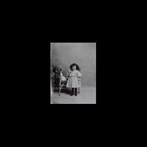 Gelatin glass negative by E.A. Scholfield; negative number 3142 and Mrs. Luther Eaton scratched on plate; portrait of child.