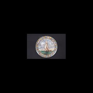 Wedgwood polychrome transfer-decorated plate of sloop yacht "THE FANNY ON PORT TACK"