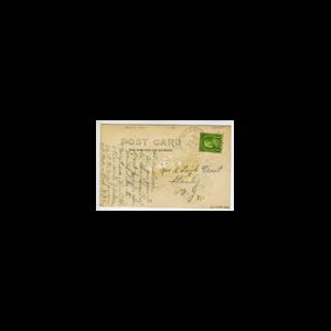 Real photo postcard; handwritten on back "EB 7911", and "DAZELL [sic.] TUG C. 1934"; postmarked 1934; Dalzell tugboat and ocean liner in New York harbor, before 1934; Statue of Liberty visible in background.