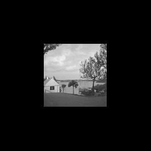 Safety negative by Carleton Mitchell; view of a harbour or coastline of Bermuda, from a cottage rented by William T. Moore for the post-race stay after the 1948 Bermuda Race; ketch yachts ARGYLL and GESTURE moored off lawn; for similar views see 1996.31.2825-2827; handwritten on original envelope neg.no. '2916', corresponds to original Mitchell contact; REF: correspondence file 1996.31 cataloging notes handwritten by Mitchell on photocopied contacts.