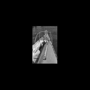 35 mm black-and-white negative; photographed by Carleton Mitchell; bow of probably 12 meter CONSTELLATION; during the 1964 America's Cup; 1964; handwritten on original envelope "CS 480" and "C-6" (correponds to original Mitchell contact sheet); handwritten on back of original corresponding contact sheet "C. MITCHELL/ CS - 480/ 9-25-64"; printed on negative frame number "7A".