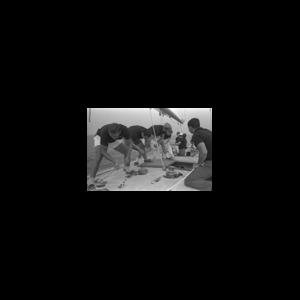 35 mm black-and-white negative; photographed by Carleton Mitchell; crew at work on deck of 12 meter CONSTELLATION; during the America's Cup trials; 1964; handwritten on original envelope "CS 480" and "C-11" (corresponds to original Mitchell contact sheet); handwritten on back of original corresponding contact sheet "C. MITCHELL/ CS - 480/ 9-25-64"; printed on negative frame number "14".