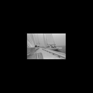 35 mm black-and-white negative; photographed by Carleton Mitchell; 12 meters AMERICAN EAGLE and CONSTELLATION under sail; during the America's Cup trials; 1964; handwritten on original envelope "CS 480" and "C-11" (corresponds to original Mitchell contact sheet); handwritten on back of original corresponding contact sheet "C. MITCHELL/ CS - 480/ 9-25-64"; printed on negative frame number "22".