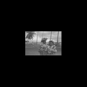 35 mm black-and-white negative; photographed by Carleton Mitchell; man and woman on beach; Tahiti; taken after the Transpacific Race; 1959; handwritten on original envelope "R 26371 C C6" (corresponds to original Mitchell contact sheet); printed on negative frame number "15".